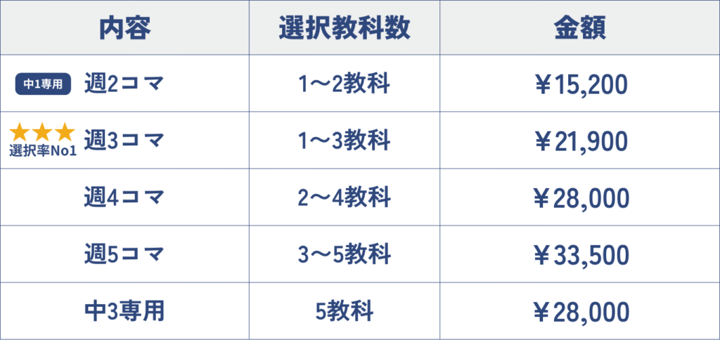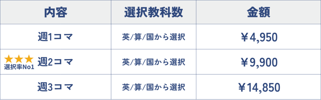 • 難関対策オプションを追加した場合、上記金額の「5%」が加算されます。(別途教材費も必要)