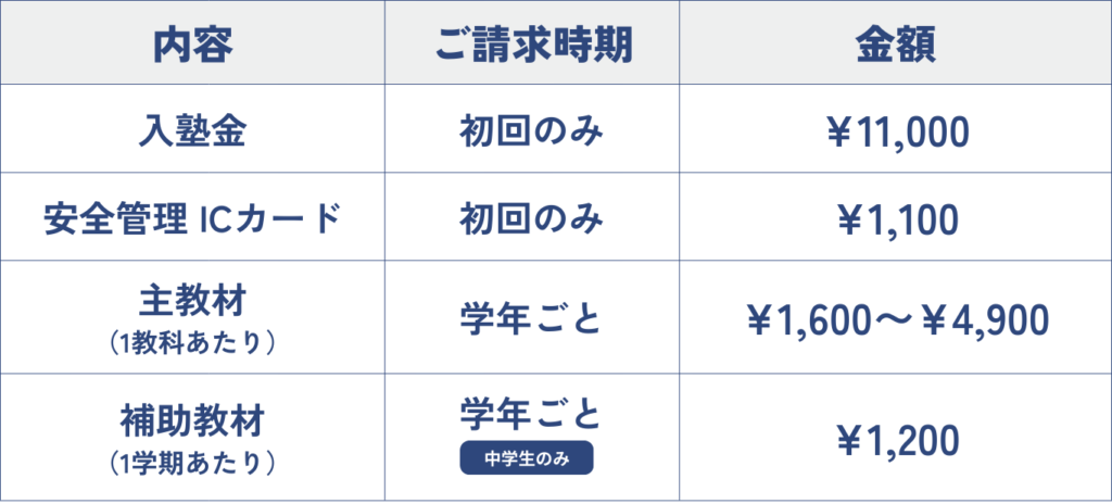 • 兄弟姉妹で同時に通塾する場合、上記金額から「10%」割引致します。