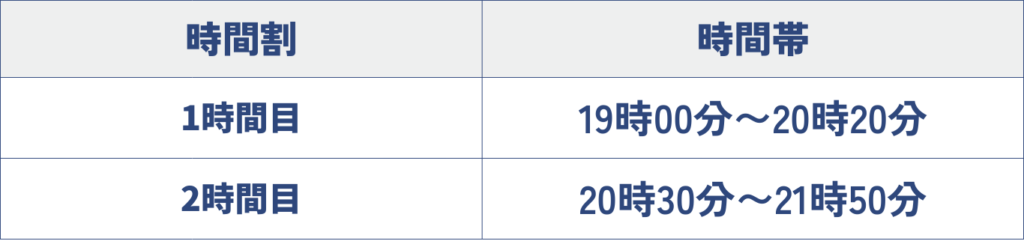 • 小学生は原則「1時間目」の枠で授業を行います。